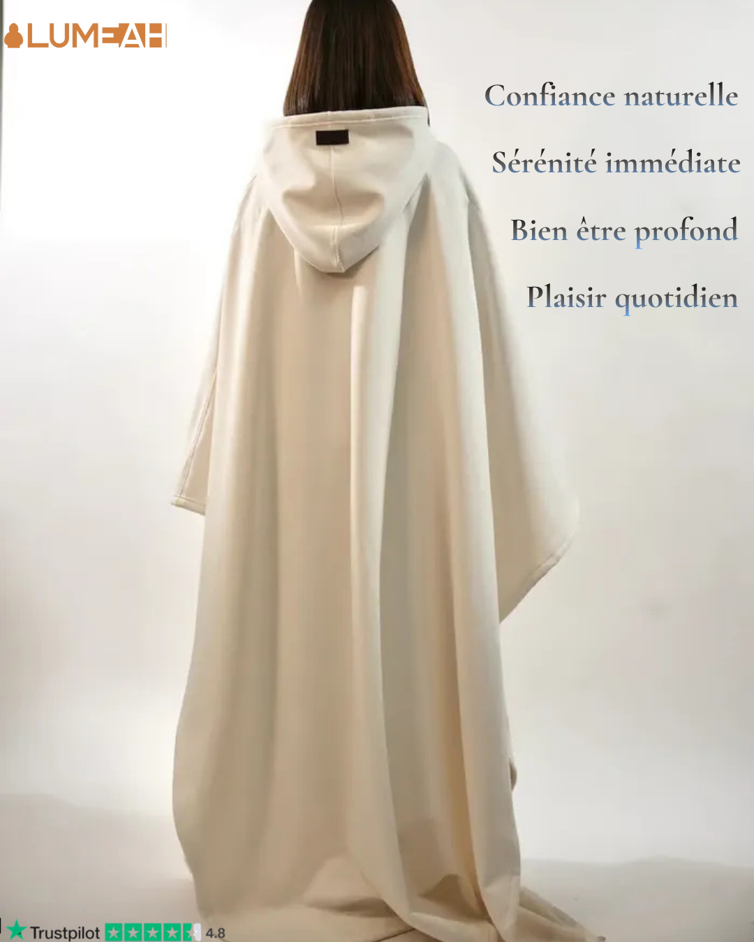 Des manches oversize et une capuche doublée transforment chaque instant en véritable cocon.